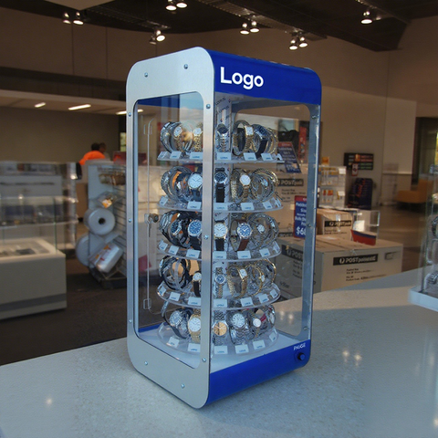 Acrylic LED Lockable Watch Display Case Cosmetic Jewelry Rotating Display Cabinet for Retail